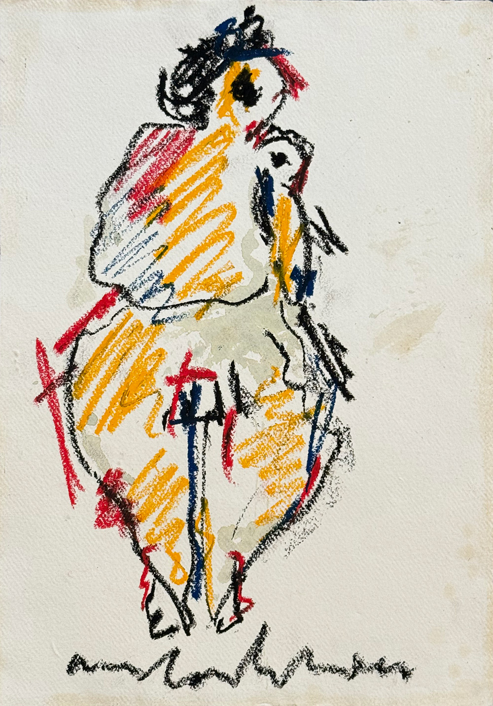 Teken en schilderwerk van Anton Heyboer op Hahnemühle papier. Origineel gesigneerd kunstwerk met de titel ‘moeder en kind’