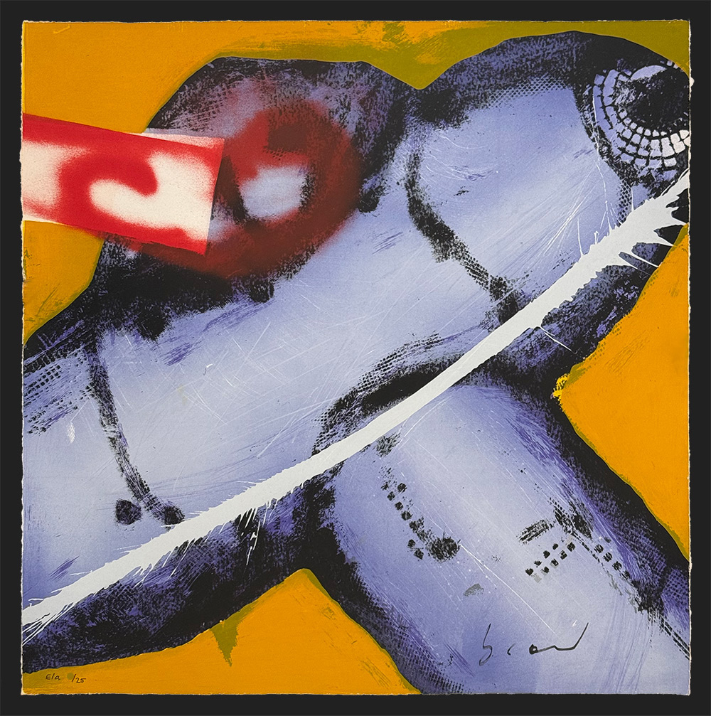 Handgesigneerde zeefdruk van Herman Brood met de titel Jumbo uit het jaar 2000 in een kleine oplage. Het kunstwerk is aflopend gedrukt op handgeschept papier.