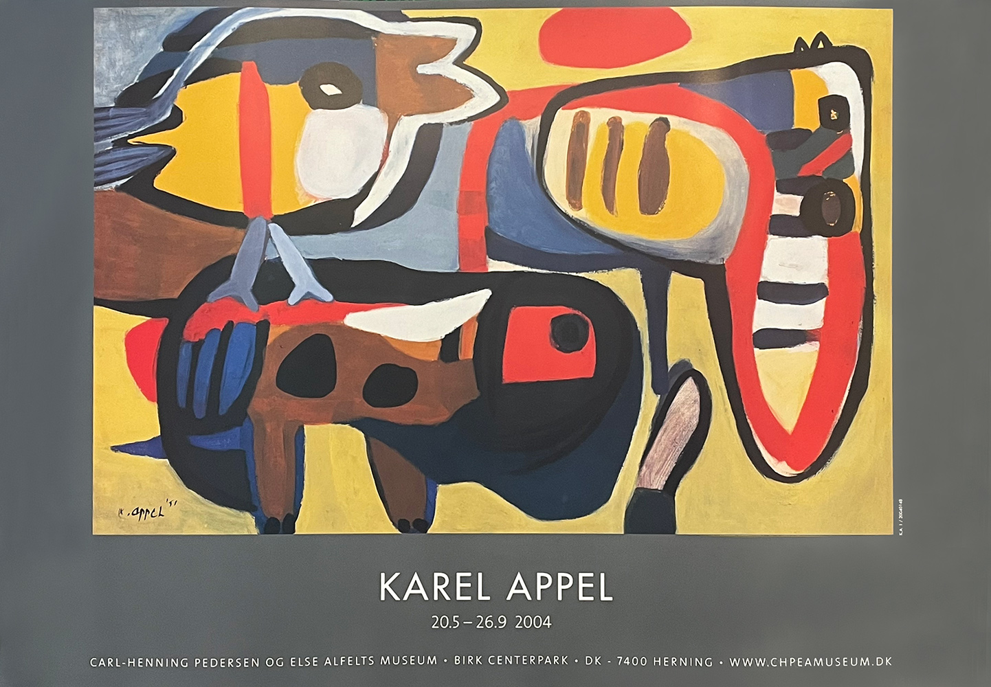 Groot formaat kunstdruk van Karel Appel, bekend van de COBRA-beweging, voor de tentoonstelling in 2004 in Denemarken.