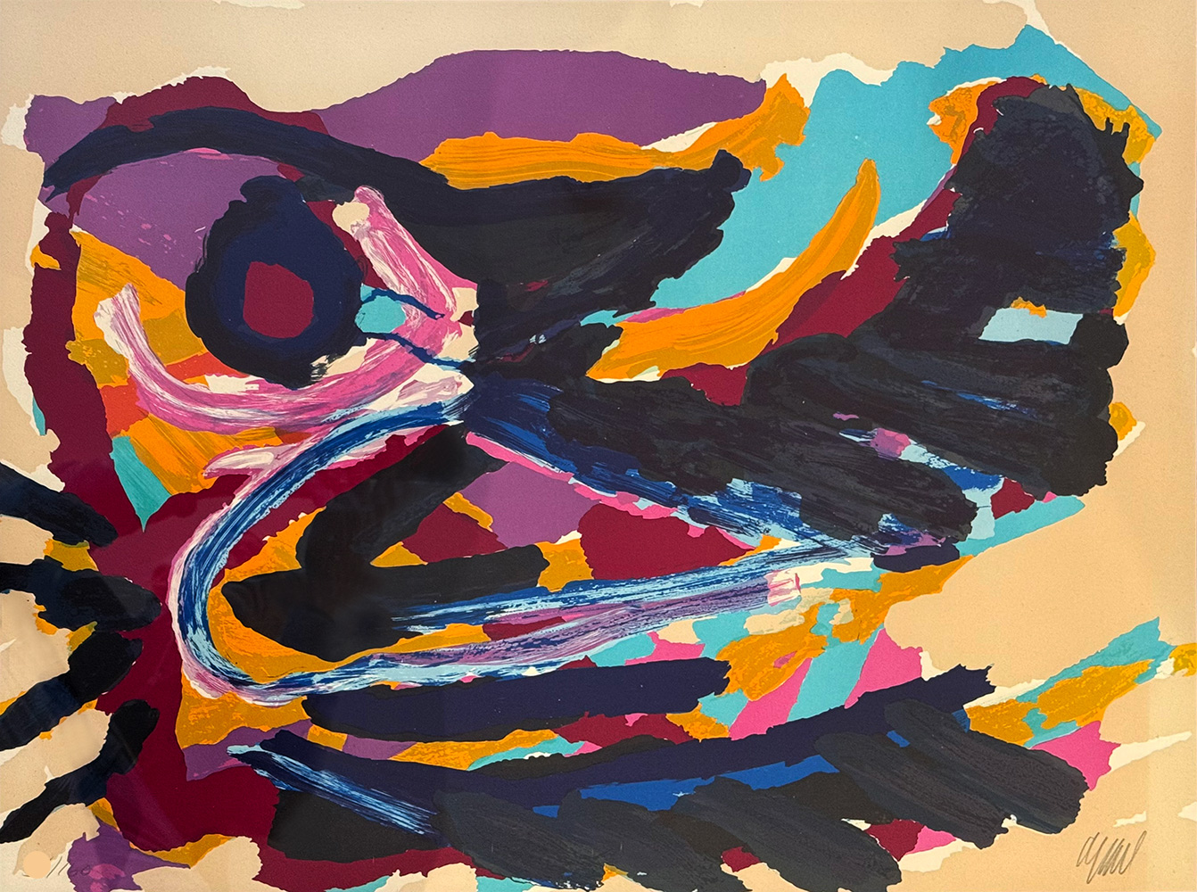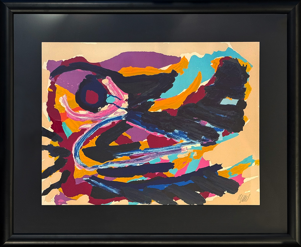 Nesting Bird van Karel Appel is een kleurrijke lithografie uit 1978, afkomstig uit een gelimiteerde oplage. Dit expressieve kunstwerk, geworteld in de CoBrA-beweging, toont een abstracte vogelvorm met krachtige penseelstreken en levendige kleuren. Een dynamische en iconische Appel voor elke kunstcollectie.