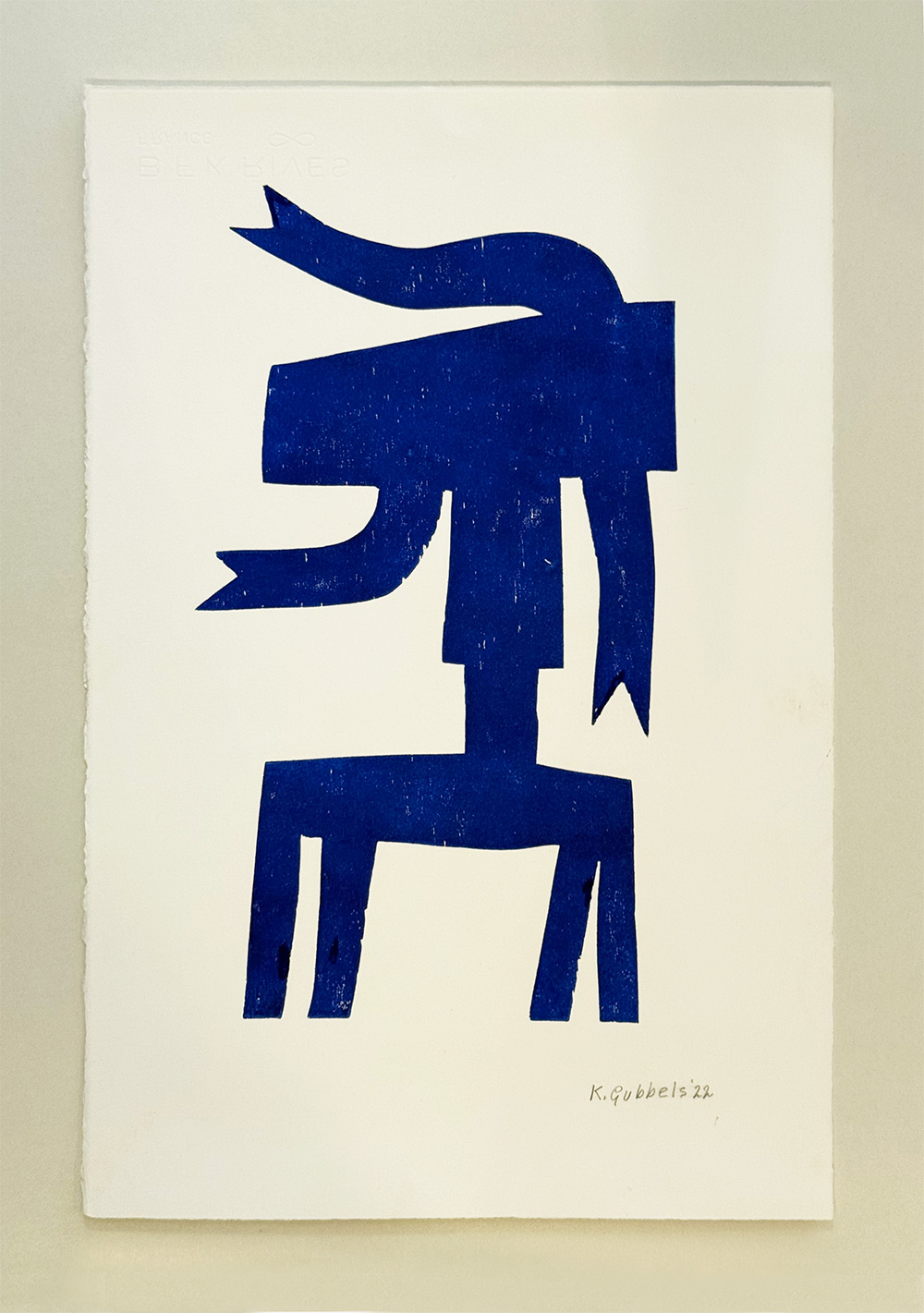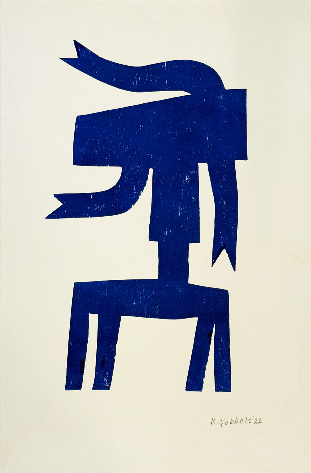 VERKOCHT – Exclusieve, handgesigneerde houtdruk van Klaas Gubbels met zijn iconische blauwe kan in een speelse, zijwaartse houding. Deze bijzondere uitgave verscheen in een gelimiteerde oplage van slechts 22 exemplaren. De blauwe kleur en de herkenbare eenvoud maken dit werk direct herkenbaar als een echte Gubbels. Een tijdloze blikvanger die kracht, rust en karakter toevoegt aan elk interieur, perfect voor liefhebbers van moderne Nederlandse kunst.