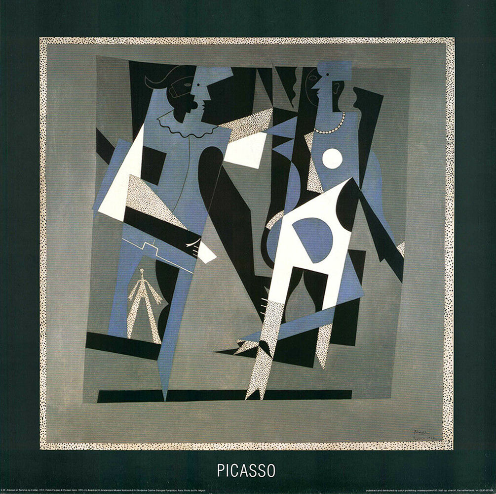 Kunstdruk van Pablo Picasso uit de jaren ’90, met zijn favoriete onderwerp, de vrouw en de mooie titel Arlequin et Femme au Collier.