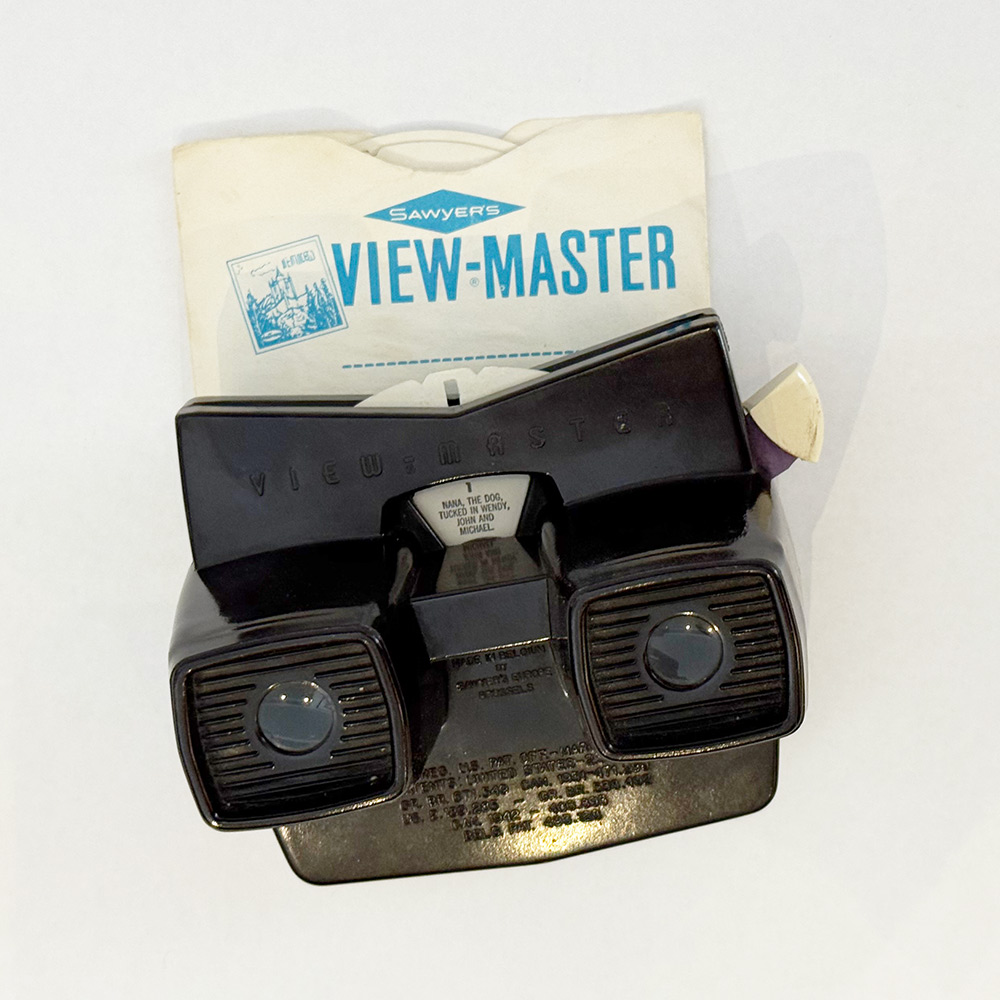 Vintage stereokijker bekend onder de naam Viewmaster voor beelden met een 3-dimensionaal effect. Bakelieten kijker uit de jaren ’50 van Sawyer’s.